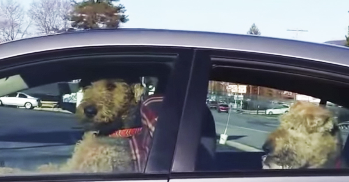I denne filmen sitter to hunder i bilen mens moren gjør ærend.